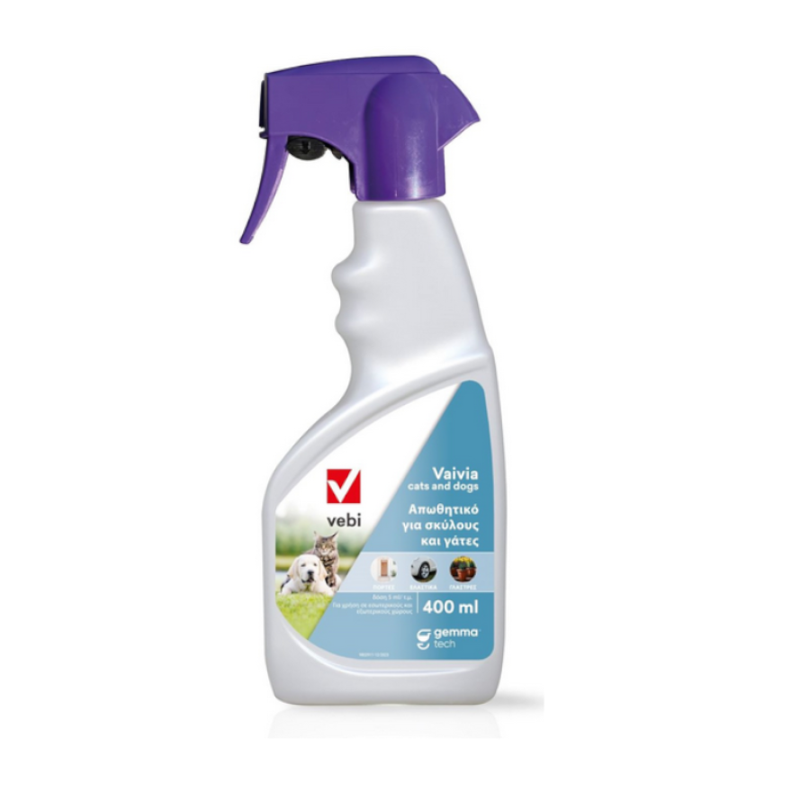 Το Vaivia cats and dogs είναι ένα ετοιμόχρηστο προϊόν που αποτρέπει τους σκύλους και τις γάτες από τη συνήθεια να προσεγγίζουν ανεπιθύμητα σημεία, καθώς καλύπτει τις συγκεκριμένες οσμές του χώρου που προσελκύουν τα ζώα και καθιστά δυσάρεστο σε αυτά να πλησιάσουν την ψεκασμένη περιοχή.